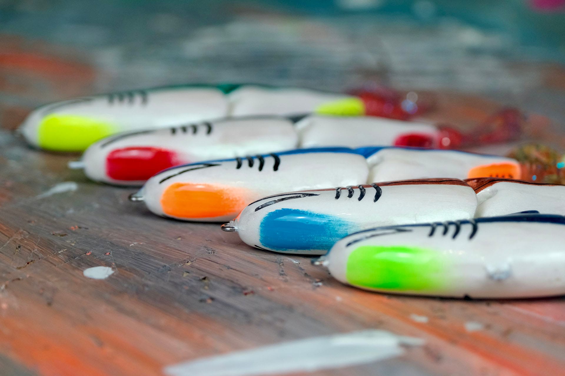 Każda z przynęt została ręcznie zaprojektowana i wykonana. Od rzeźbienia pierwszego modelu po malowanie wielu warstw pędzlami na etapie wykańczania produktu. Dlatego każda z przynęt jest wyjątkowa.
